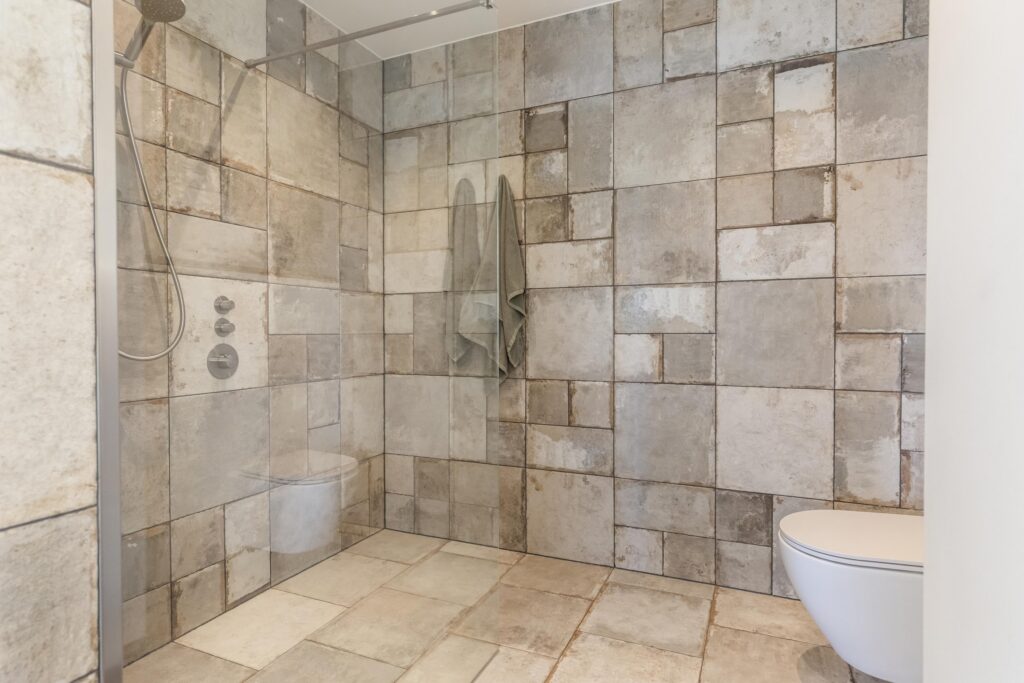 The architect has created a masterpiece in the bathroom: an intimate “snail-shell” design with the spacious shower at its center, significantly larger than in comparable apartments, thanks to the incorporation of part of the hallway. The bathroom is fully equipped and features underfloor heating for maximum comfort on cold mornings. The overall impression is one of luxury, calm, and thoughtful design.