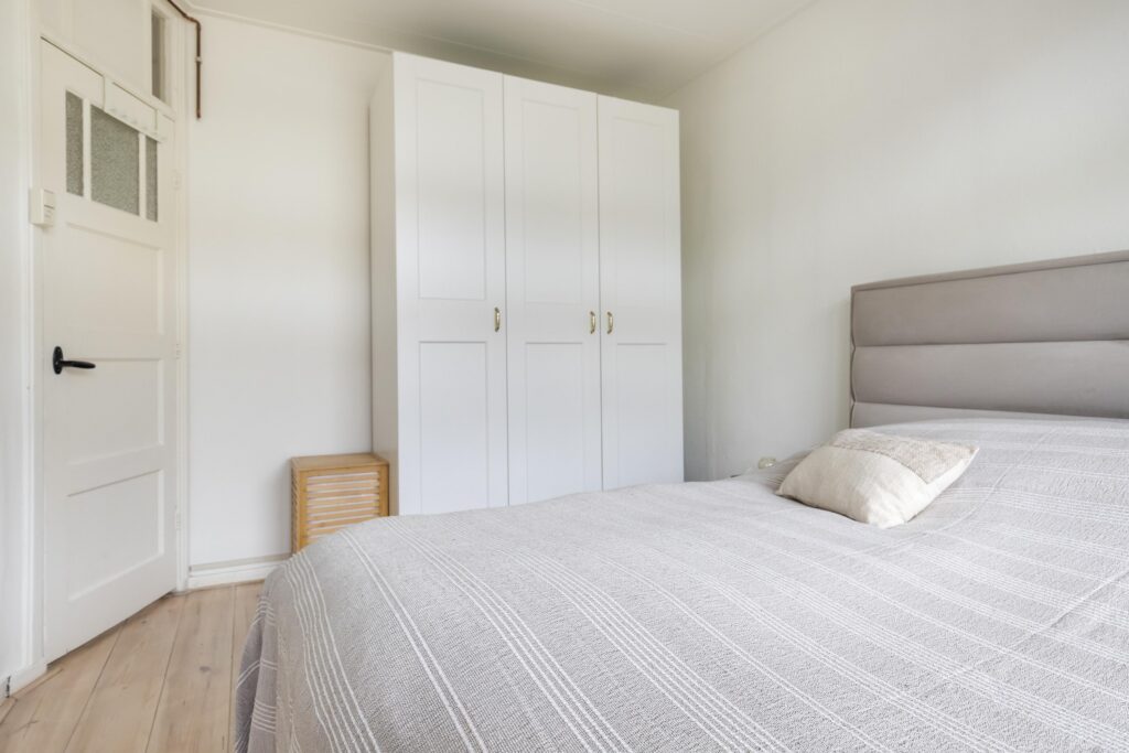 De grote slaapkamer is ruim opgezet en biedt plaats aan een tweepersoonsbed en een royale kledingkast. Dankzij de directe toegang tot het balkon aan de achterzijde is dit een fijne en lichte slaapkamer met een extra gevoel van ruimte.