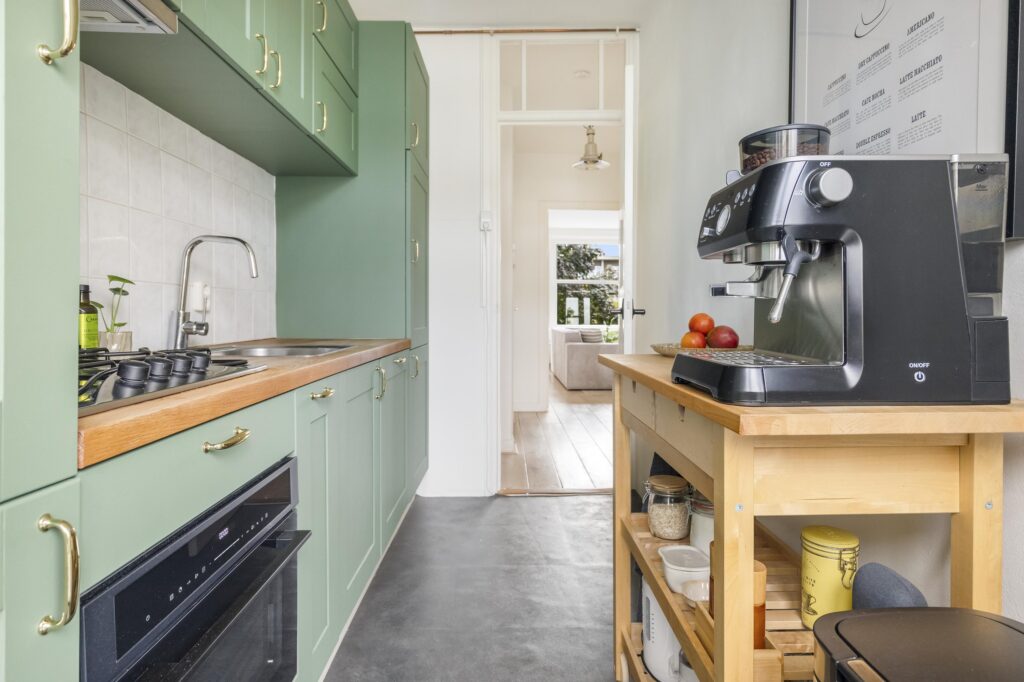 The kitchen is well-positioned and functionally designed. Thanks to its straight layout, there is sufficient workspace and storage, while the kitchen is directly connected to the hallway, making it an efficient and practical cooking area.