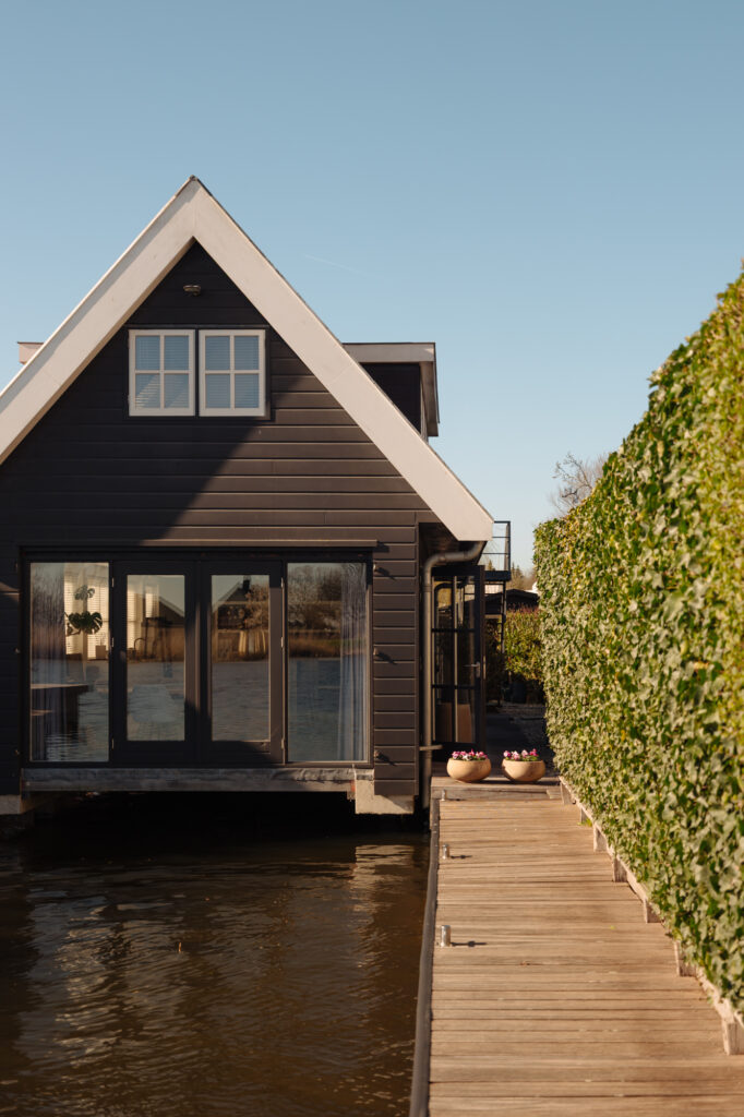 Het boothuis is omgebouwd tot een volwaardig en multifunctioneel bijgebouw van circa 79 m². De begane grond bestaat uit een grote, open en lichte ruimte met openslaande deuren direct aan het water.